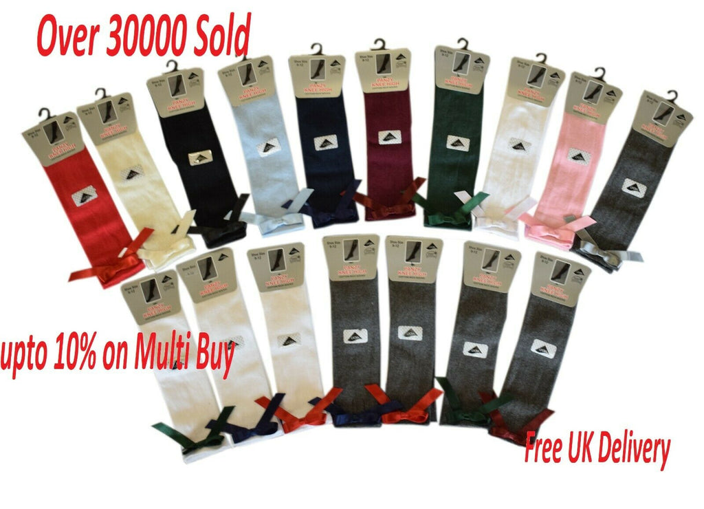 Girls Knee High Socks Bow School Socks With Bow children kids All UK Size
