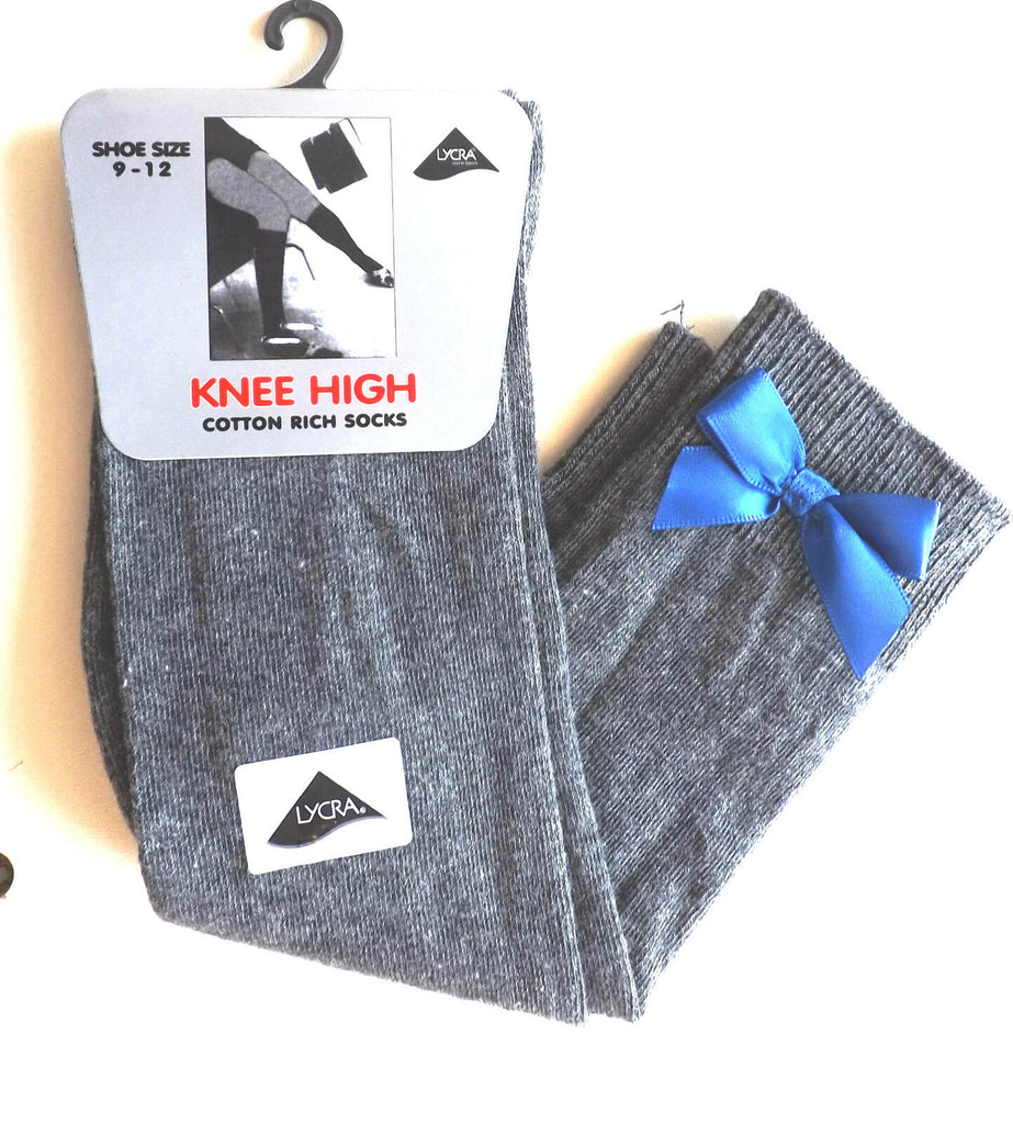GREY WITH NAVY BLUE BOW / 12.5-3.5 (7-10 yrs) - £2.69 GBP