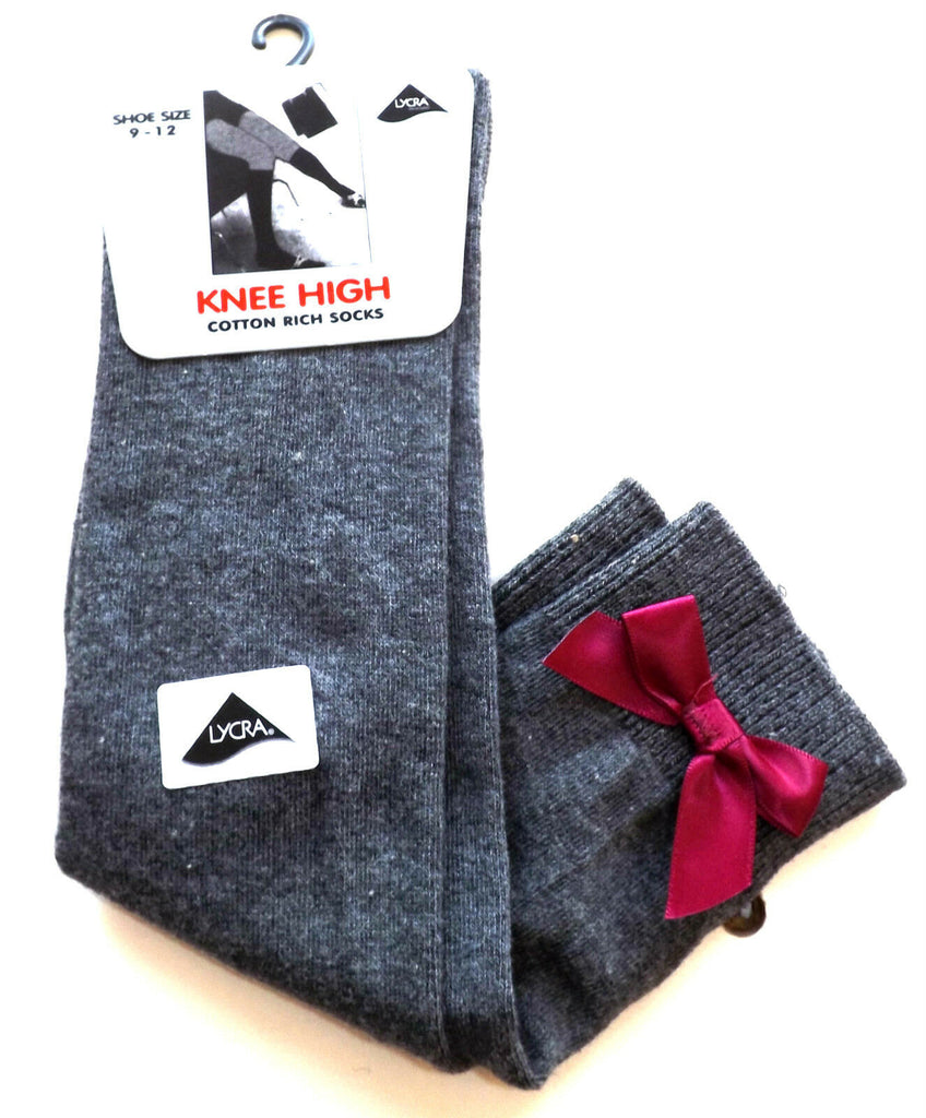 GREY WITH BURGUNDY BOW / 4-6.5 (11+ Girls and ladies ) - £2.69 GBP