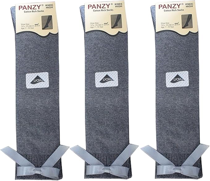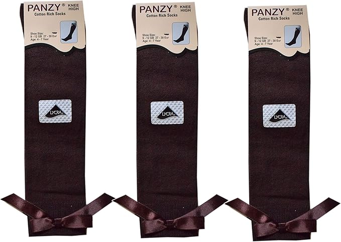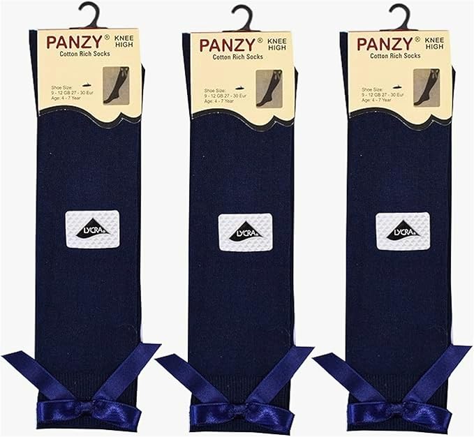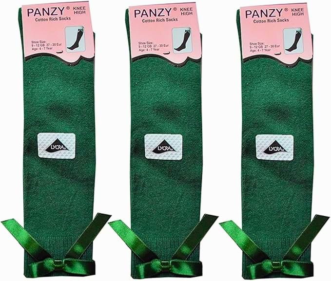 Panzy® 3 pairs Girls Bow Knee High School Plain Long Length Cotton Stretch With all size & colour