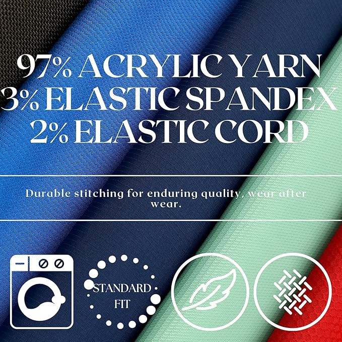 Made from acrylic yarn with elastic fibres